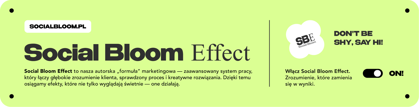 Social Bloom Effect to autorska formuła: zrozumienie marki, proces i kreatywność, która dowozi wyniki.